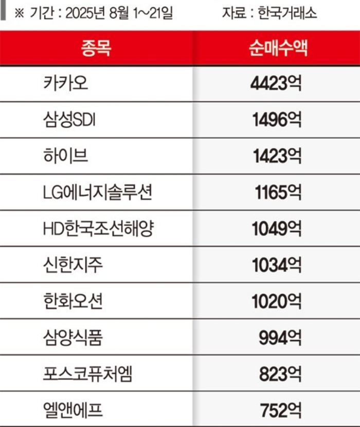 특히 삼성SDI는 국내 주식시장 전체에서 두 번째로 많이 매수한 종목이라는 점이 놀랍습니다.