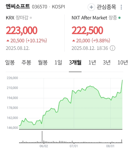 엔씨소프트 차트는 이미 진입 시그널을 보여주고 있었습니다.